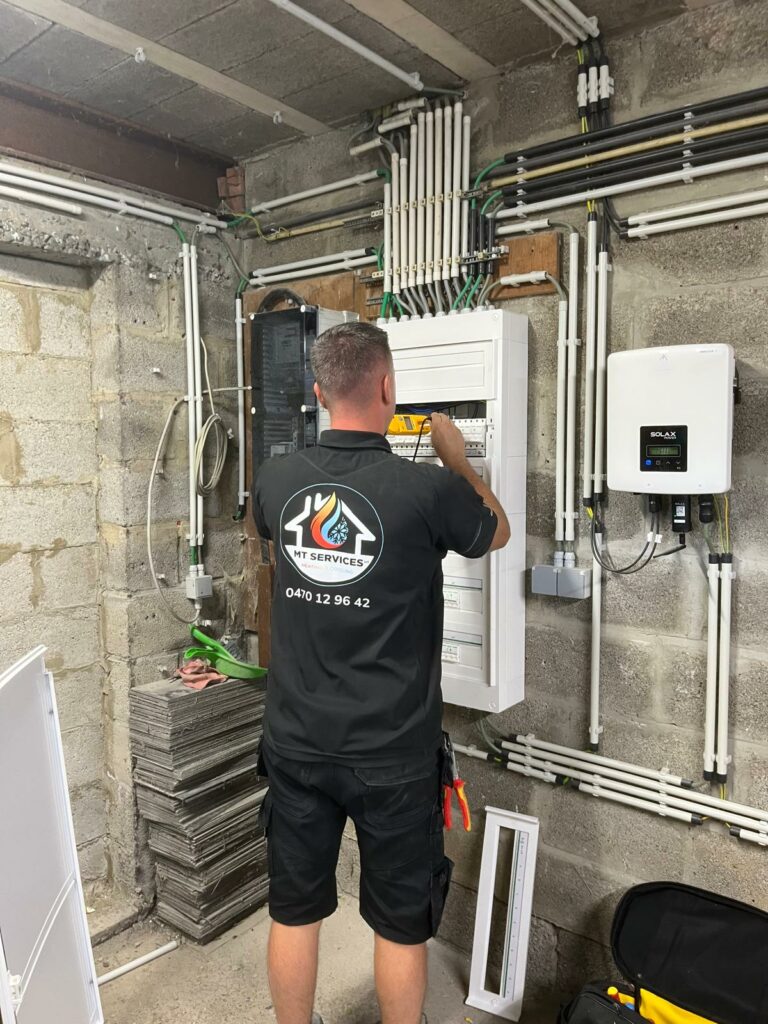 MT Services propose des services complets d’installation et d’entretien de systèmes de pompe à chaleur (air/air, air/eau) à Libramont, Bastogne, Arlon et partout en province de Luxembourg. Nous sommes spécialisés dans la conception et l’installation de solutions de pompe à chaleur, adaptées à vos besoins spécifiques. Nos installations sont réalisées avec des produits de qualité supérieure pour garantir votre confort et votre efficacité énergétique. Notre équipe d’experts assure également la maintenance de pompe à chaleur pour prolonger la durée de vie de vos équipements et maintenir leur performance optimale. Chez MT Services, nous nous engageons à vous fournir des solutions sur mesure qui répondent à vos attentes en matière de confort thermique. Que vous ayez besoin d’une nouvelle installation, d’un système de pompe à chaleur air/air ou air/eau efficace et écologique, faites confiance à MT Services pour des solutions fiables et durables. Contactez-nous dès aujourd’hui pour discuter de vos projets !